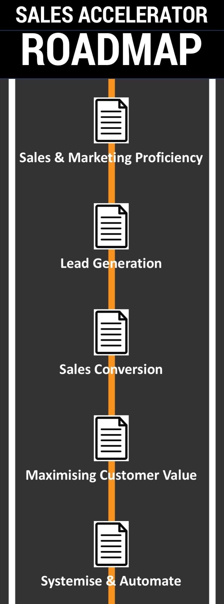 LOW-COST TO IMPLEMENT: Better still, the solutions are low-cost – often even zero cost - to implement. With the Sales Accelerator ROADMAP you can grow your business without breaking the bank and still achieve outstanding results even on a shoestring budget if necessary.